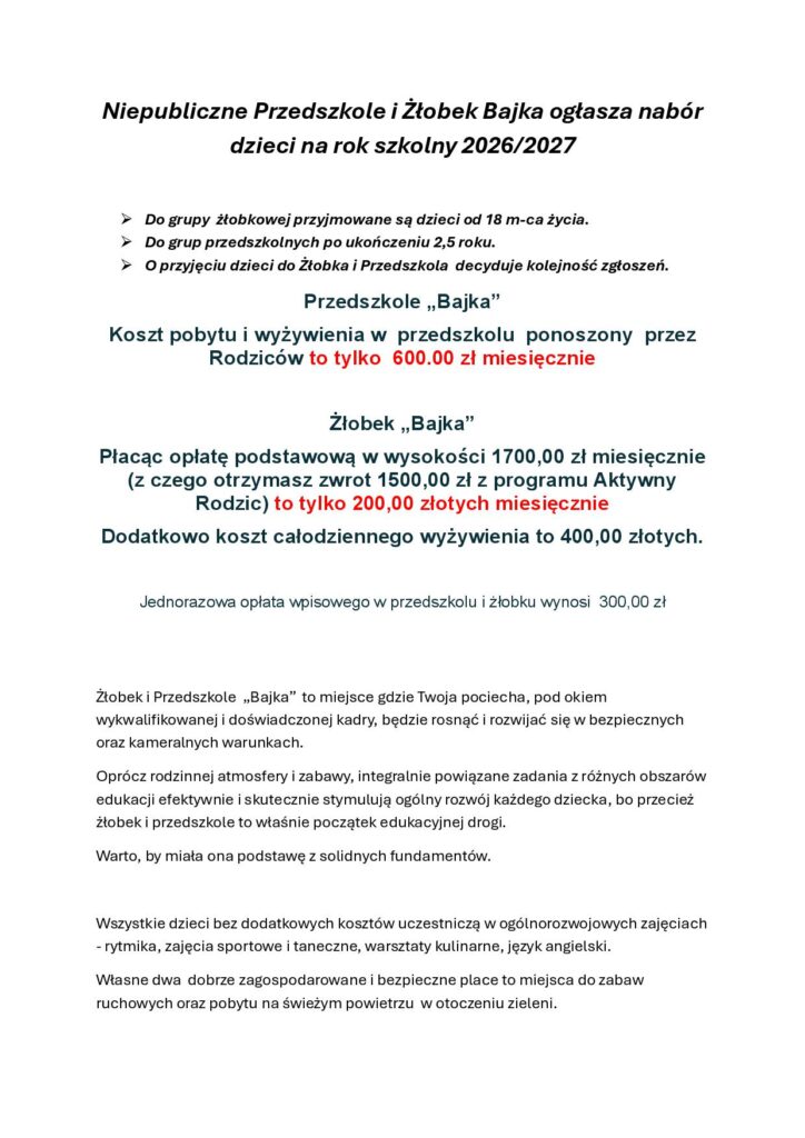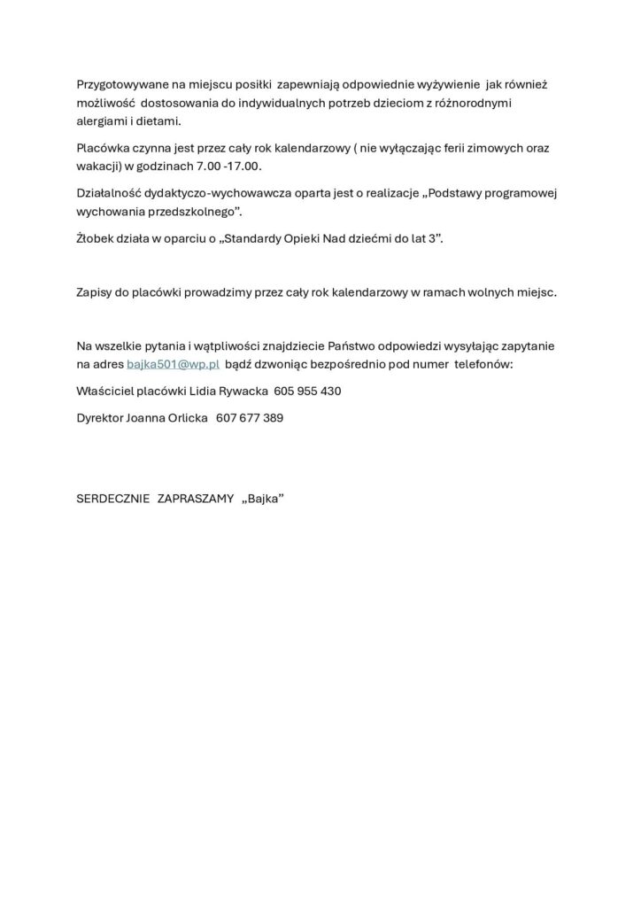 Właściciele iPracownicy przedszkola Bajka pragną złożyć wszystkim dzieciom iich rodzinom najserdeczniejsze życzenia zdrowych, szczęśliwych, spokojnych icudownie przeżytych Świąt Bożego Narodzenia. Jak naświątecznym stole znajduje się dużo dobroci, życzymy Państwu, aby nigdy niezabrakło jej wWaszym życiu. Żyjcie wzgodzie zesobą ibliskimi orazwzdrowiu, niechwnadchodzącym roku spełniają się wszystkie najskrytsze marzenia! Radosnych, pełnych...